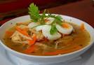 Vágjuk a sonkát és a bambuszrügyet keskeny csíkokra. Verjõk fel a tojásfehérjét. Pároljuk meg a csirkehúst, és rostirányban szeljük nagyon keskeny csíkokra. Áztassuk be a szójatésztát langyos vízbe fél órára, csöpögtessük le, majd vágjuk öt centis darabokra. Forraljuk fel az erõlevest, és a tojásfehérje kivételével minden anyagot tegyünk bele. 15 percnyi fõzés után óvatosan keverjük hozzá a felvert tojásfehérjét. Két perc fõzés után tálalhatjuk.